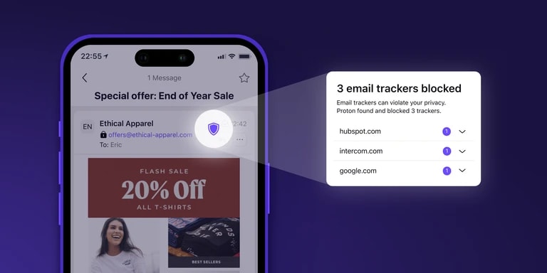 At Proton, we believe you should be able to read your emails without worrying about who’s spying on you. With our enhanced tracking protection feature (which is enabled by default), all spy trackers are automatically blocked, allowing you to view images in your emails safely while keeping your email activity private. You can also click on the shield icon at the top right of the email to see the blocked trackers.