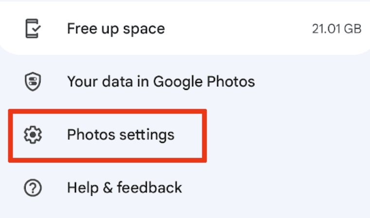 - Dans la partie inférieure du nouvel écran, trouvez un bouton qui dit Paramètres des photos et appuyez dessus.