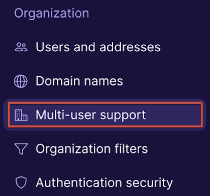 In the settings sidebar, under the Organization section, click Multi-user support