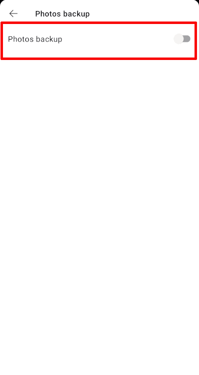 - To re-enable photo backup, you can turn the same toggle switch back on.