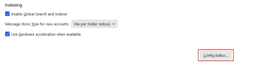 2. On the General tab, scroll to the bottom and click Config Editor.
