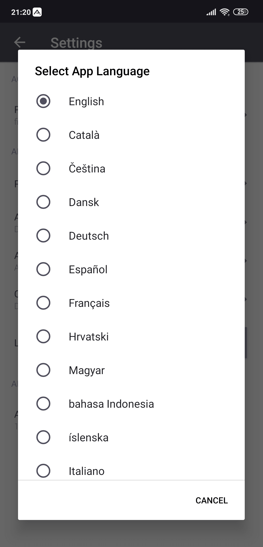 2. In the Settings menu, select App Language to open the list of available languages.
