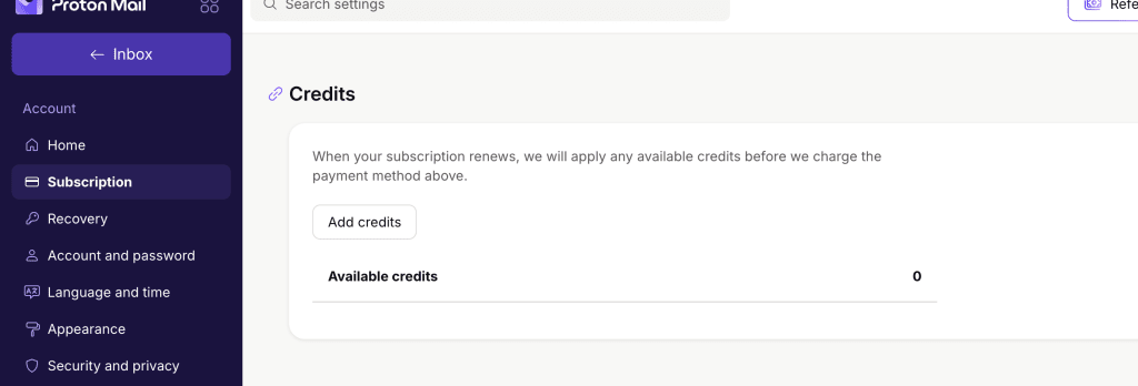 You won’t get prorated credits when you cancel your subscription (downgrade to Proton Free). That’s because your paid subscription doesn’t end early — it expires at the end of your billing period.